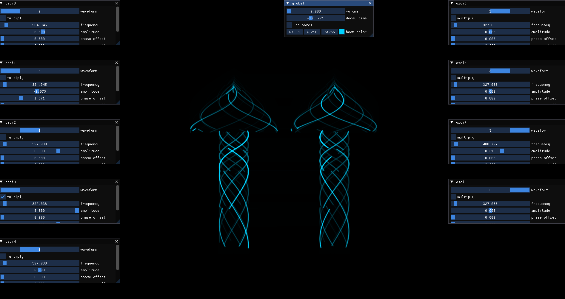 This project visualizes data from MIDI streams like the one coming from an MPD 240 MIDI controller. The data is visualized via triangle and square wave oscillators with controls to change the waveform, operation, and phase of the visualized waveform . The project is implemented in C. |